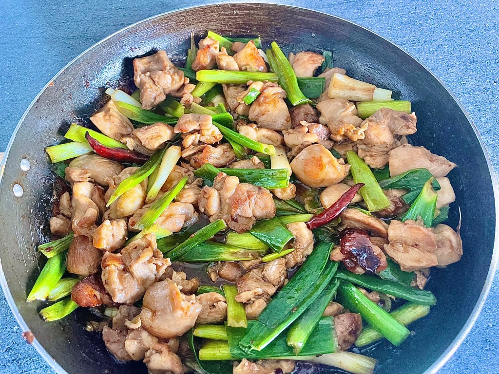 Increase heat to high. Add marinated chicken and stir-fry until browned and nearly cooked through (about 4–5 minutes). - Add Scallions